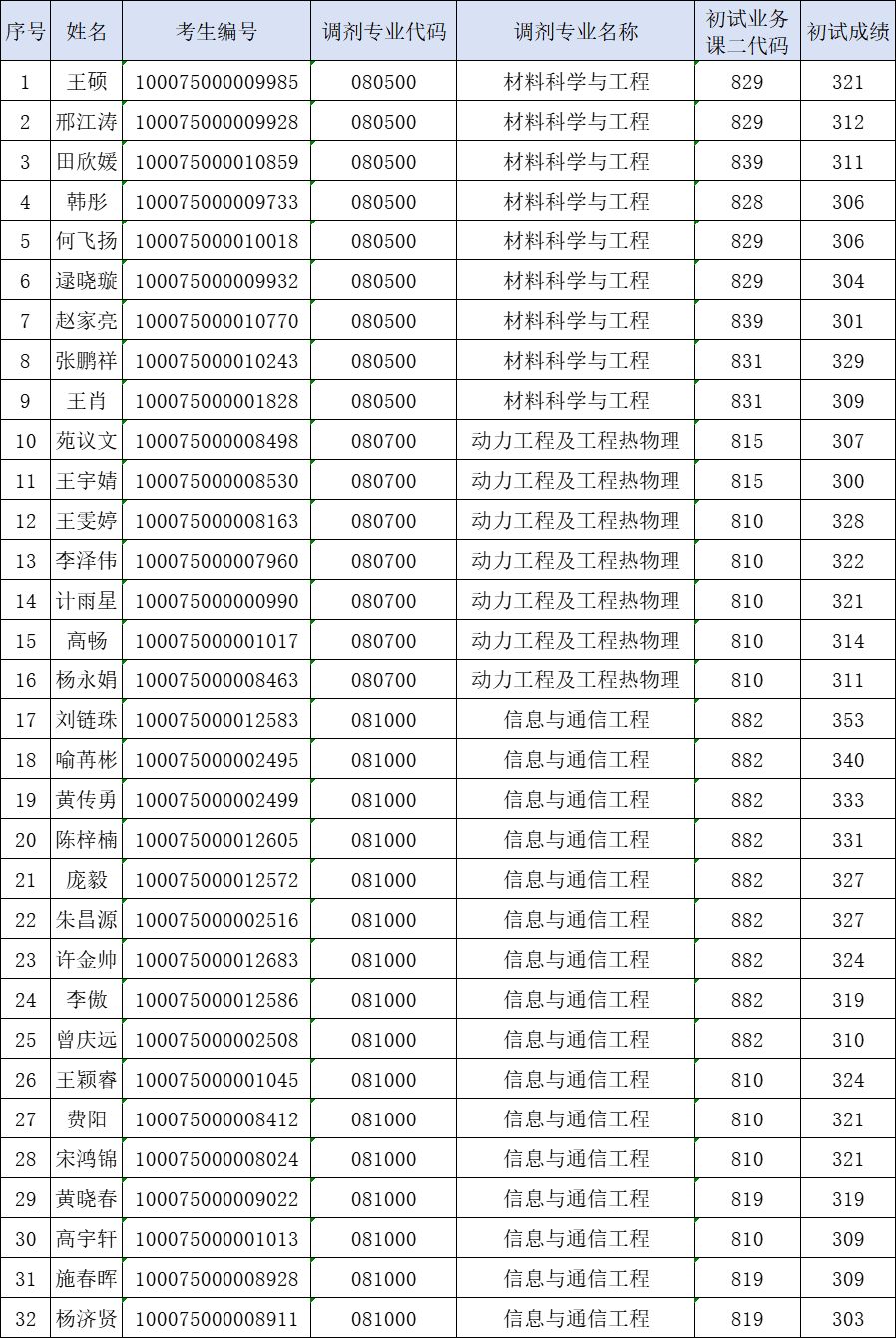 北京理工大学(珠海)2025年硕士研究生材料科学与工程、动力工程及工程热物理、信息与通信工程专业调剂复试名单公示