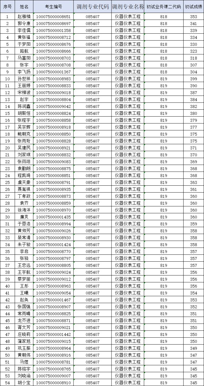 北京理工大学(珠海)2025年硕士研究生仪器仪表工程专业调剂复试名单公示