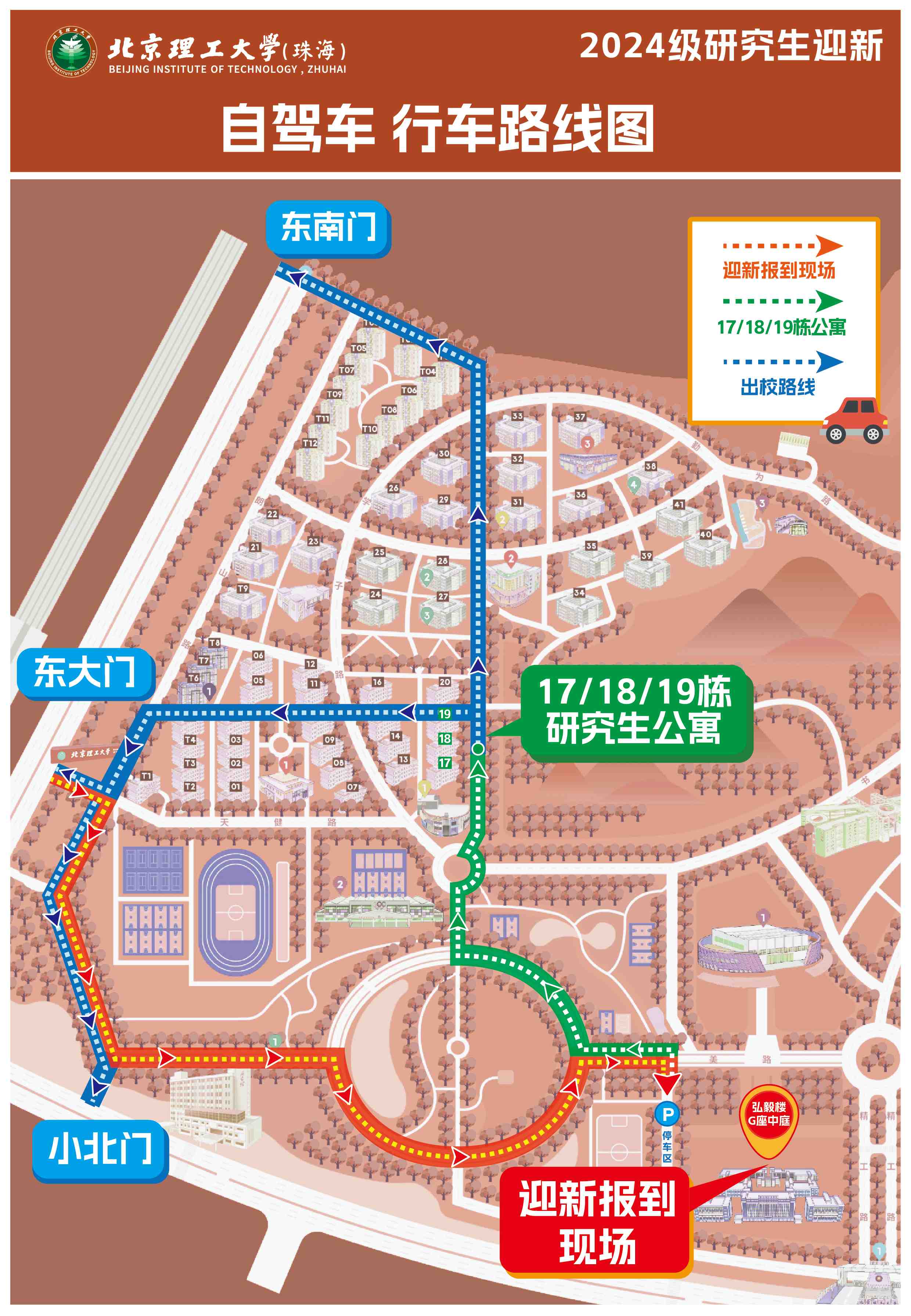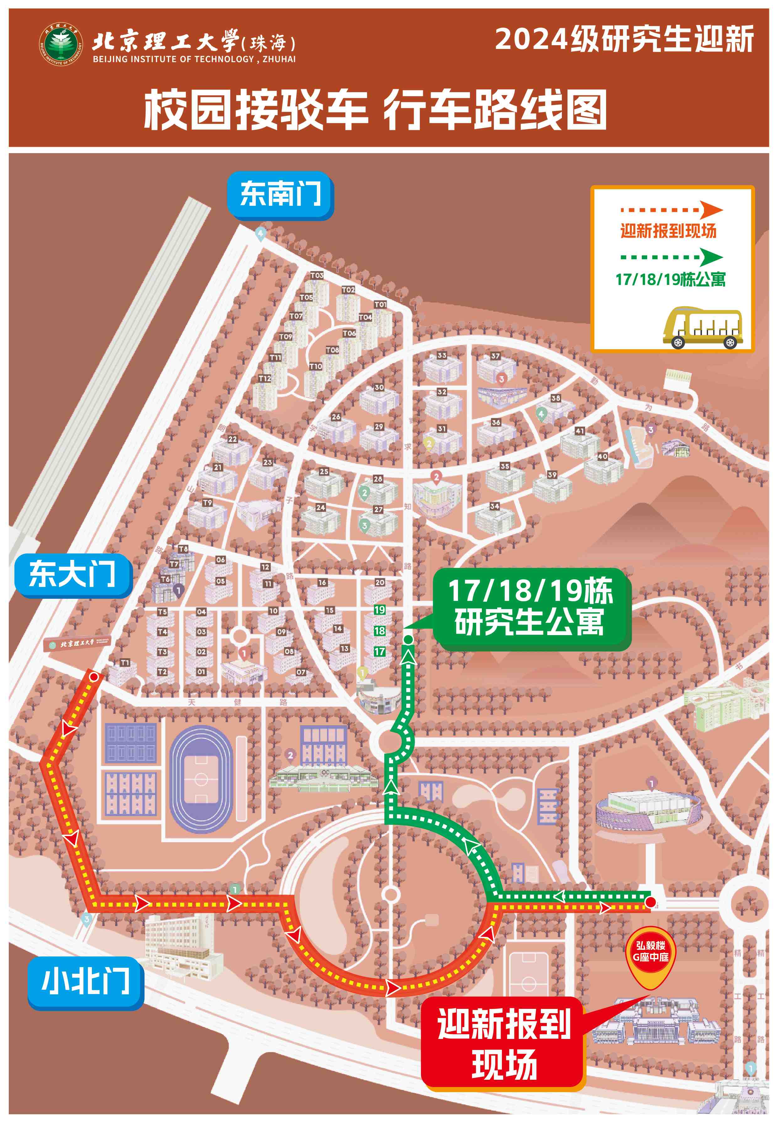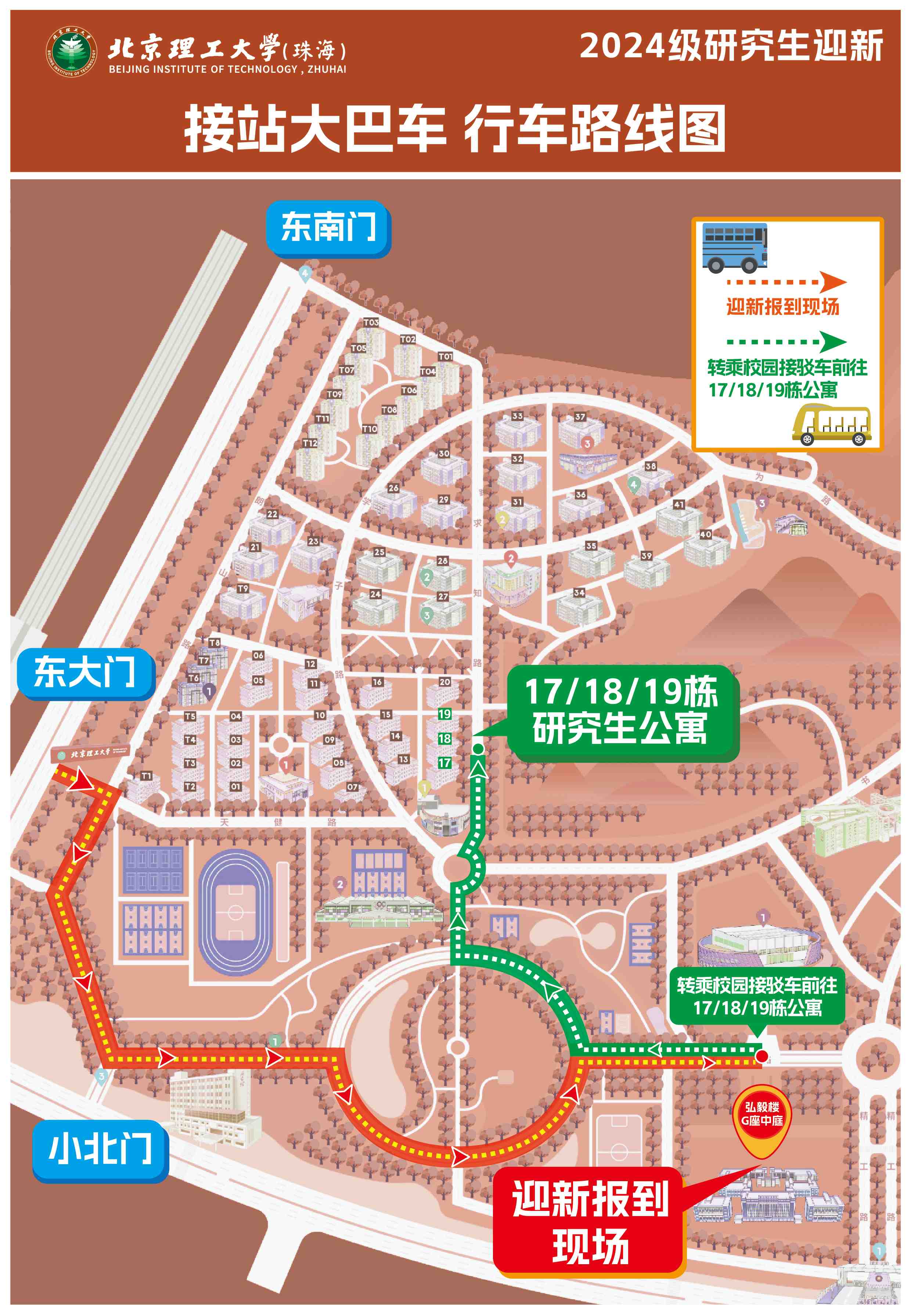 A.唐家湾站下车的同学,出站后经天桥步行至东大门,统一乘坐校园接驳车抵达迎新现场