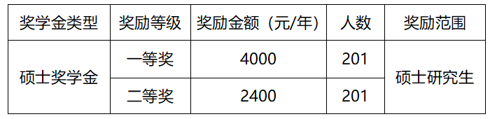 2024年硕士研究生学业奖学金等级与金额设定标准