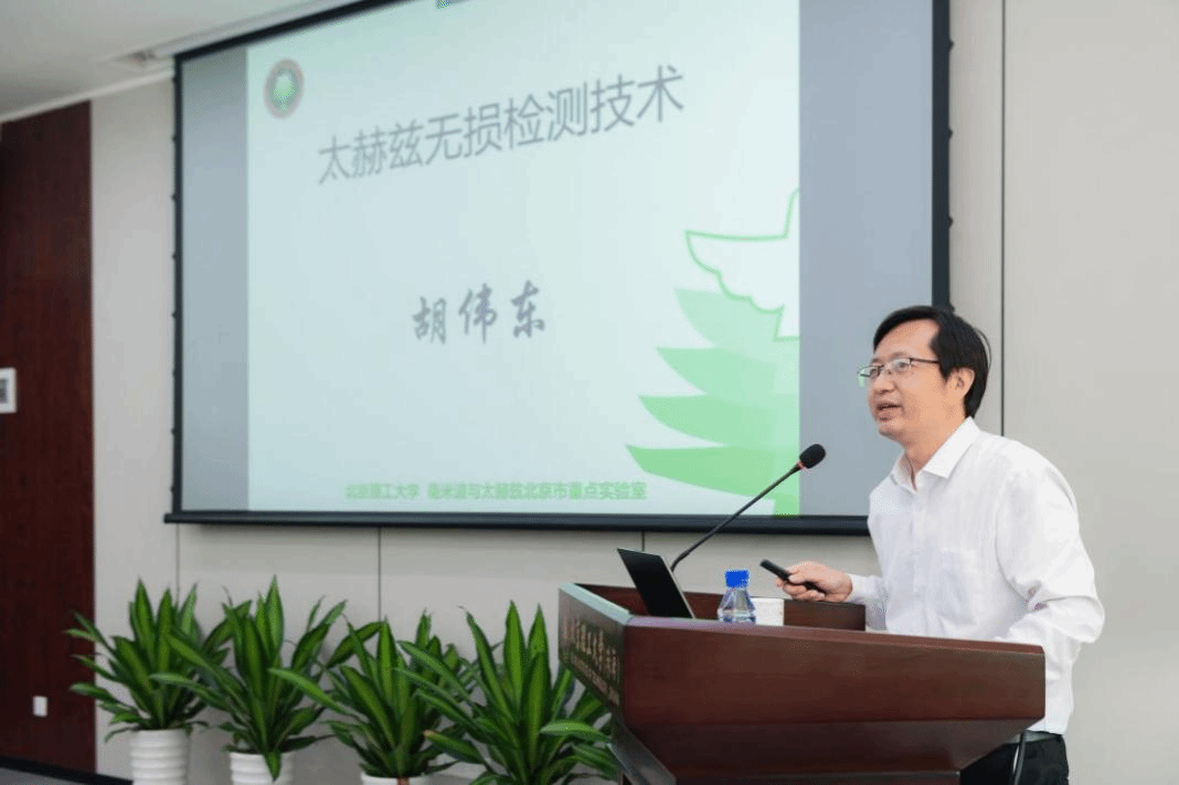 胡伟东围绕太赫兹无损检测概况、太赫兹CT关键技术、太赫兹技术应用等主题进行了全面系统地阐述。太赫兹技术已被应用于无损检测成像中。多年来,胡伟东团队攻克了基于频分时分复用的超宽带太赫兹信号产生与准光合成方法、超宽带太赫兹信号非线性度校准方法、多频段信号融合及基于卷积神经网络的图像复原等关键技术,研制了110GHz~500GHz超宽频带无损检测成像系统,可以实现对复合材料的三维层析成像和高精度无损检测,具有穿透性好、带宽大、分辨率高等特点,成果已成功应用于航天复合材料、天线罩、风力叶片、文物古迹、危爆品、IC集成电路等检测中。讲座中,胡伟东教授以自己撰写的一首七绝“霜重峰红峡水清,瀑飞山险石峥嵘,满斟秦岭人家酒,直下蓝关取灞城”分享了其在参与国家重大科研攻关后的感受感想,勉励科研人员和学子们努力学习、科研报国,在场参会人员深受鼓舞。