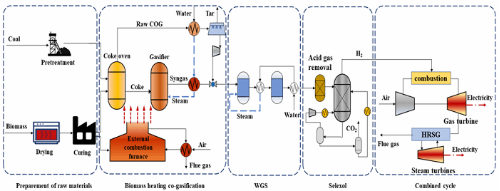 图3 基于生物质/煤互补分级气化的捕集CO2发电系统