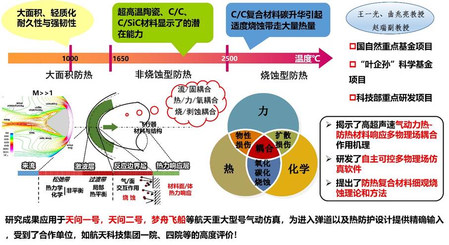 围绕国防与工业高端装备先进结构制造中的前沿基础科学问题与重大工程技术问题,在防热材料与结构的性能表征与评价、复合材料力学及虚拟仿真方法、轻量化多功能结构设计及增材制造技术等方面取得突出成果,并在行业部门获得应用和好评。