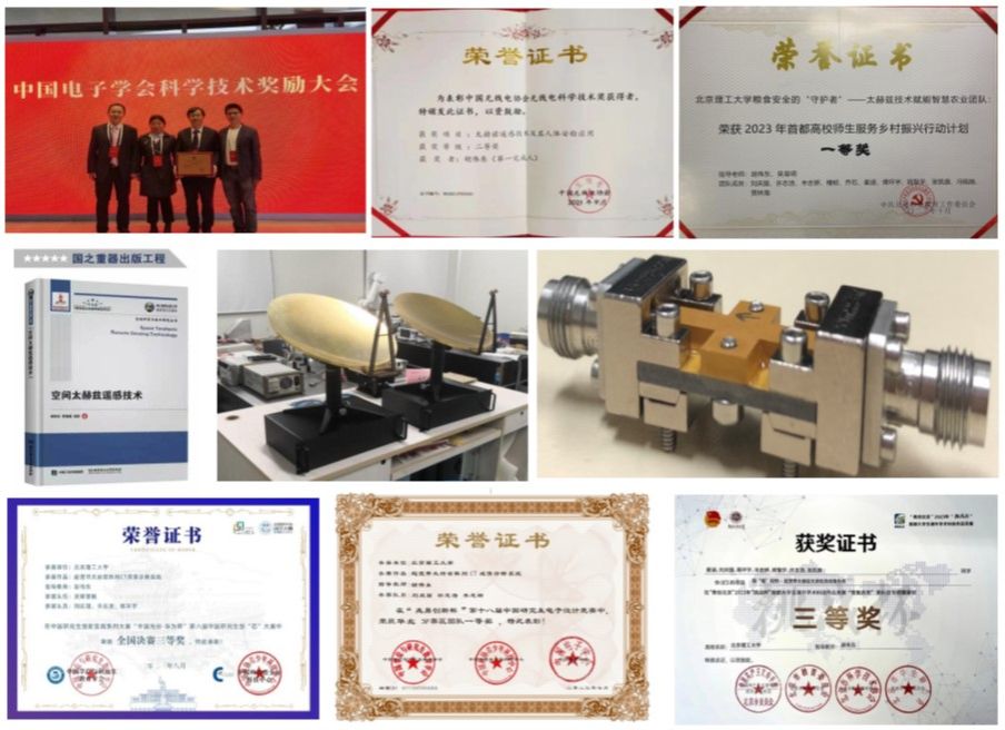 太赫兹科学应用研究中心成立以来,在毫米波太赫兹波共孔径联合相参云雷达、液晶毫米波连续移相器、天线系统介质解耦技术和太赫兹无损检测成像技术等方向取得了丰硕的科研学术成果。获得国家科技进步二等奖1项,部级科技进步一等奖2项、二等奖4项,部级其他成果奖10项以上;获得授权国家/国防发明专利30多项;发表SCI/EI检索论文300篇以上。在本领域具有突出的的学术影响力和竞争力。学生获得华为杯创芯大赛全国三等奖、研电赛华北赛区一等奖、挑战杯北京市三等奖等多项学科竞赛荣誉。