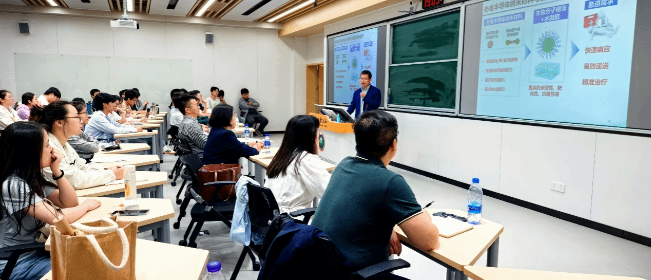 为推动学科交叉与融合创新,营造浓厚的学术氛围,10月21日晚,前沿交叉学域主办的系列学术讲座第一讲在弘毅楼HF204正式拉开帷幕,特邀北京理工大学化学与化工学院院长张加涛作题为《光电半导体纳米材料及智能生物诊疗应用》的专题讲座,为现场师生带来一场前沿学术盛宴。