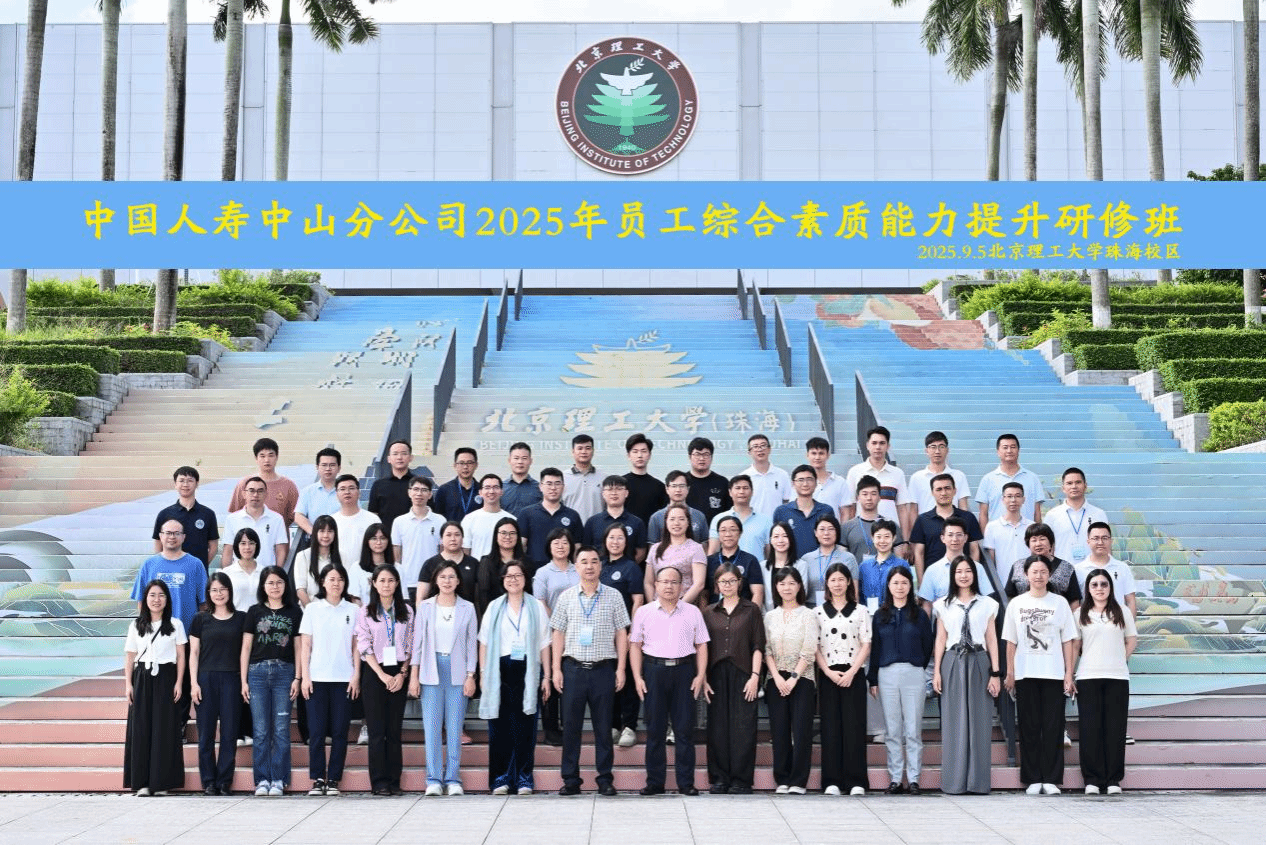 近日,中国人寿中山分公司2025年员工综合素质能力提升研修班(第一期)在北京理工大学珠海校区圆满结业。本次培训于9月5日至6日举行,以“实战赋能、提质增效”为主题,紧扣保险行业发展趋势与一线业务需求,着力提升员工综合能力。