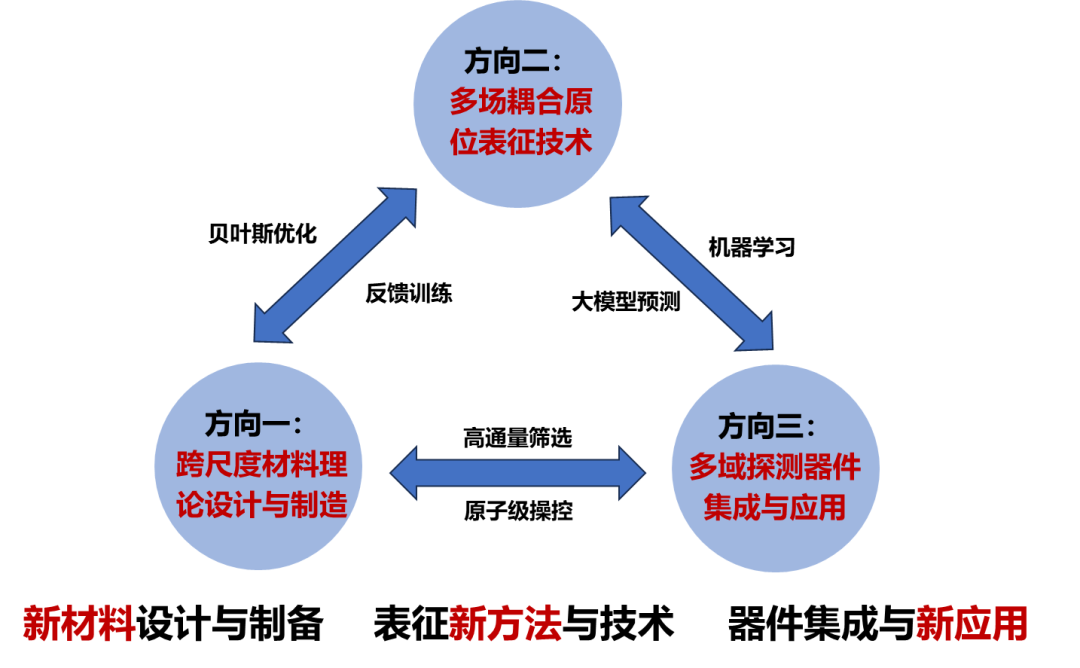 团队聚焦于新型跨尺度光电材料理论设计和制造、多场耦合原位表征新方法和技术、多域探测器件集成和应用三个方向开展研究。