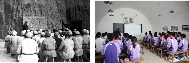 自然科学院课堂(左)与北理工“窑洞思政课”课堂(右)