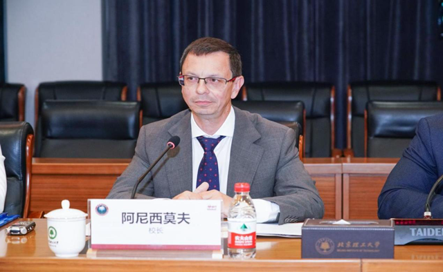 阿尼西莫夫对北理工的热情接待表示衷心感谢。他高度赞扬了北理工在科学研究、人才培养、国际化建设等方面取得的卓越成就,系统介绍了俄高经在发展历程、校区布局、国际排名、优势学科、国际化特色、招生及人才培养成果等方面的情况。他表示,当前中俄关系持续深化为两校合作提供了有利契机,期待双方在科学研究与人才培养领域,进一步推动校领导战略对话、学院交流合作、专家学术协作以及青年交流互动,构建多层次、全方位的合作新格局。