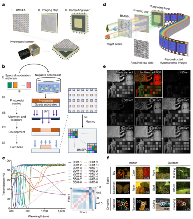 高光谱成像技术是一种能够同时获取目标空间几何信息和多波段光谱信息的光学探测技术,在卫星遥感、深空探测、新质装备等领域具有重大应用。然而,现有高光谱成像技术存在系统体积大、重量重、难集成等瓶颈问题,严重制约了其在重大领域、新质新域的发展和应用。北京理工大学张军院士带领团队秉承“报国担当,知微见著,交叉协同,卓越创新”的精神,不懈攻关,努力开拓,首创了片上光谱复用感知架构,研制了国际首款百通道百万像素高光谱实时成像器件,光能利用率创造世界最高记录。