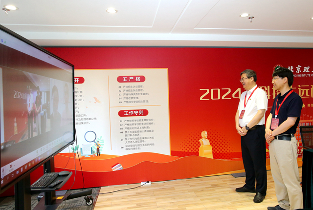 7月24日,北京理工大学党委书记张军院士、校长姜澜院士来到学校本科招生录取现场,检查指导本科招生录取工作,并亲切慰问在录取现场日夜奋战的工作人员。