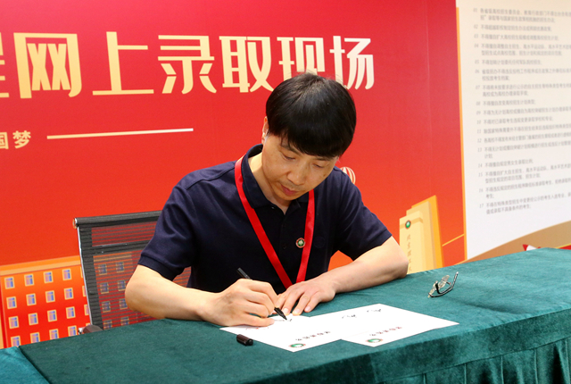 在录取现场,张军为考生代表签送图书礼盒,姜澜为考生代表签发录取通知书。