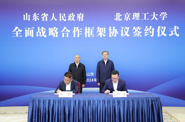 10月22日,北京理工大学党委书记张军带队赴山东调研,在济南会见山东省委书记林武,并签署《山东省人民政府-北京理工大学全面战略合作框架协议》。山东省人民政府党组成员、副省长宋军继,省委副秘书长、办公厅主任高剑锋,省委副秘书长、政研室主任张祚亭,省科学技术厅党组书记、厅长孙海生,北京理工大学党委常委、副校长邹美帅出席签约仪式。