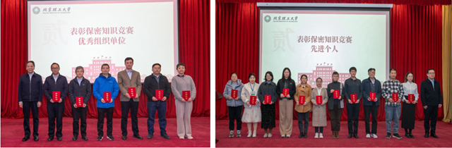 会议举行了“保密知识竞赛”表彰活动,汪本聪、邹美帅分别为本次“保密知识竞赛”优秀组织单位、先进个人代表进行颁奖。