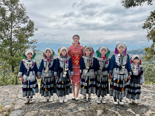 2021年10月,宋婷婷在云南省麻栗坡县开展公益工作时与当地少数民族孩子合影