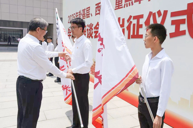 张军为即将出征的2025届毕业生代表授旗,勉励他们练就履职尽责的真本事、硬脊梁、铁肩膀,为实现以中国式现代化全面推进强国建设、民族复兴伟业贡献北理工人的青春力量!