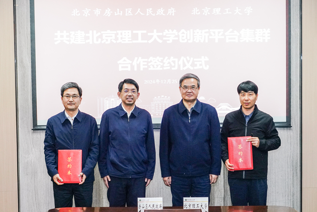 12月25日下午,北京理工大学与房山区人民政府“共建北京理工大学创新平台集群”签约仪式在良乡校区举行。房山区区委书记阳波,区委副书记、区长底志欣,区委常委、常务副区长张明智,区委常委、区委政法委书记、区委办主任李进伟,副区长张奇,北京理工大学党委书记张军院士,校长姜澜院士,党委常委、副校长李振键,党委常委、副校长汪本聪,党委副书记杨帆出席签约仪式。签约仪式由汪本聪主持。