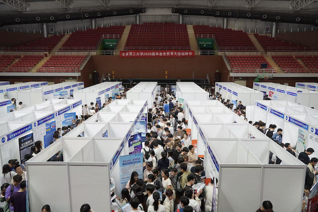 9月15日、16日,学校连续两天在中关村校区和良乡校区举办2026届毕业生秋季大型综合招聘会,338家优质单位和行业领军头部企业参会,为毕业生提供高质量就业岗位3.2万余个。参会单位包括中国航天科技集团、中国兵器工业集团、中国电子科技集团、空军、海军、武警等部队和国防工业领域单位,中国科学院、国家超级计算中心等科研院所,腾讯、字节跳动、荣耀等科技前沿领域企业,中国卫通、中车集团等大型央国企,工商银行等知名金融机构等,吸引了校内外6000余名毕业生前来应聘。招聘会现场还首次设置就业指导展台,毕业生可通过“智慧就业平台”制作和完善求职简历。校内外就业指导专家现场解答问题、一对一精准指导,助力同学们提升就业竞争力和岗位胜任力,实现成功就业、满意就业。
