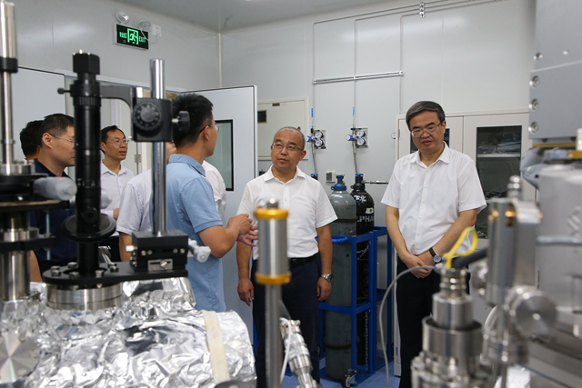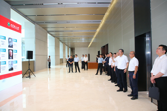 在量子物理实验中心,于英杰详细了解中心建设和量子科学领域科研工作的相关情况,与中心负责人及青年科学家们亲切交谈,鼓励研究人员积极探索新的技术方向,希望未来能有更多原创前沿技术和高端装备技术落地北京。于英杰一行还参观了“挺起民族的脊梁——党领导的人民军工”展馆、文萃楼智慧教室等。
