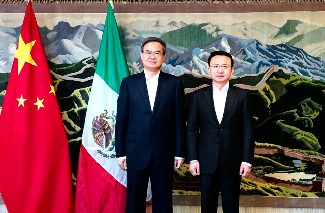 在中国驻墨西哥大使馆,张军与张润围绕深化中墨学术交流、扩大国际科技合作、设立美洲交流中心等议题深入交流。张润表示,我国高度重视发展中墨关系,当前两国关系保持良好发展,战略性、互补性、互利性不断显现,希望北理工发挥专业领域优势,助力中墨航空领域合作更上一层楼。