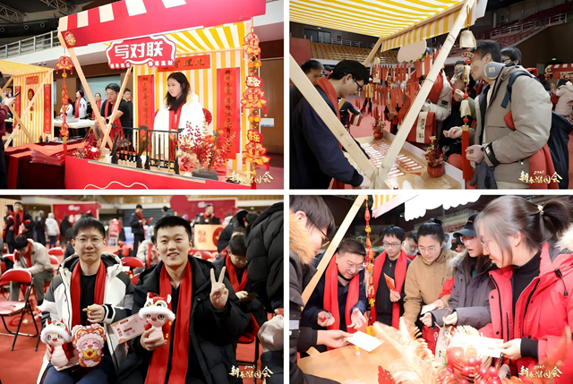 挂上彩灯,贴上彩纸,一边赏灯,一边猜谜。“仙娥飞赴蟾宫旁,月背首次探异疆——嫦娥六号”“似具昆虫千只眼,观天测宇效能显——中国复眼”,新春游园会将国家建设发展大事记融入灯谜,将学校年度十大新闻编写为春联,带领师生在参与传统文化活动的过程中,深切体会科技强国带来的巨大进步,感受学校高质高效绿色发展的充足活力。