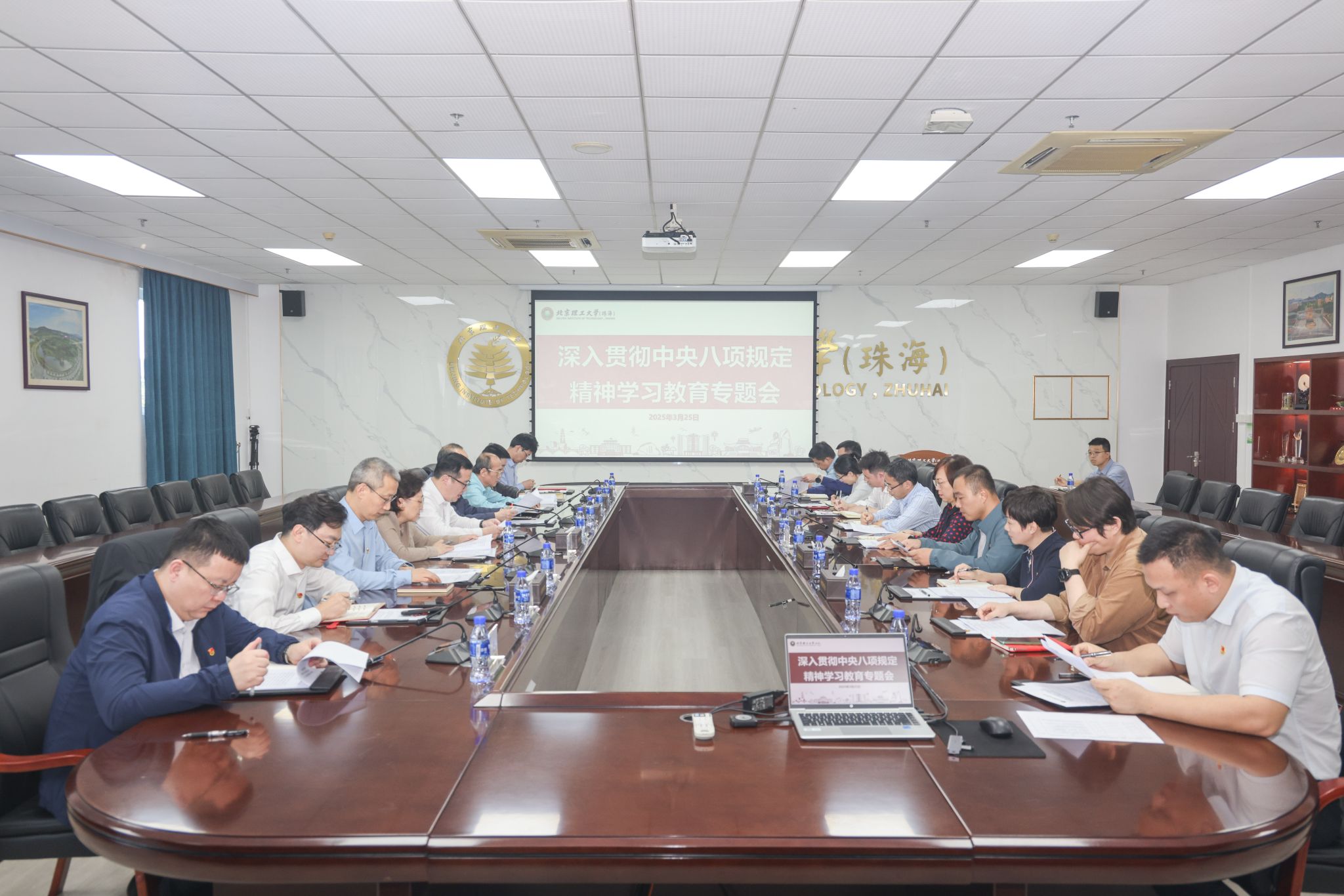 会议传达《中共中央办公厅关于在全党开展深入贯彻党的八项规定精神学习教育的通知》和中央党的建设工作领导小组、上级有关部门以及北京理工大学党委有关会议精神,审议通过《北京理工大学(珠海)开展深入贯彻中央八项规定精神学习教育工作方案》,正式启动校区深入贯彻中央八项规定精神学习教育。