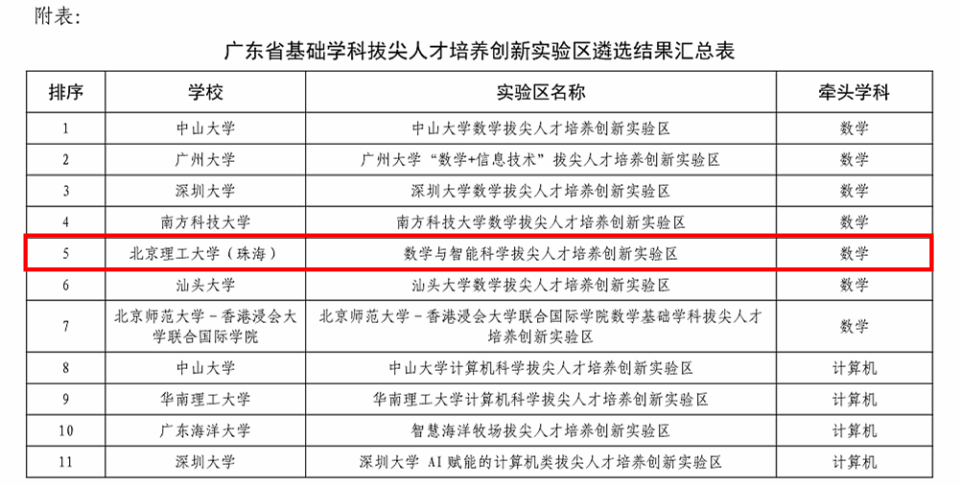 近日,广东省教育厅公布2024年度广东省基础学科拔尖人才培养创新实验区立项结果,珠海校区申报的“数学与智能科学拔尖人才培养创新实验区”成功入选。