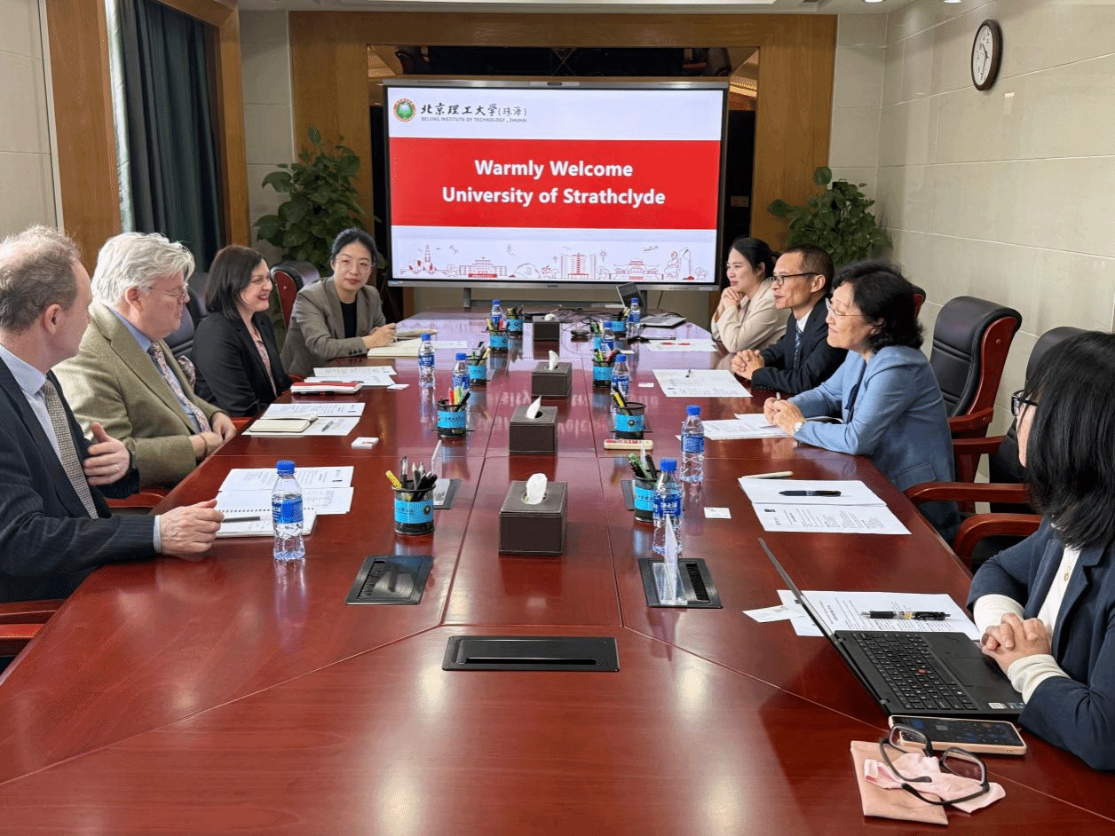 4月14日上午,英国思克莱德大学副校长兼人文社会科学学院执行院长伊恩·里弗斯(Ian Rivers)教授一行到访,北京理工大学珠海校区常务副校长栗苹会见来宾,双方就深化合作进行交流。