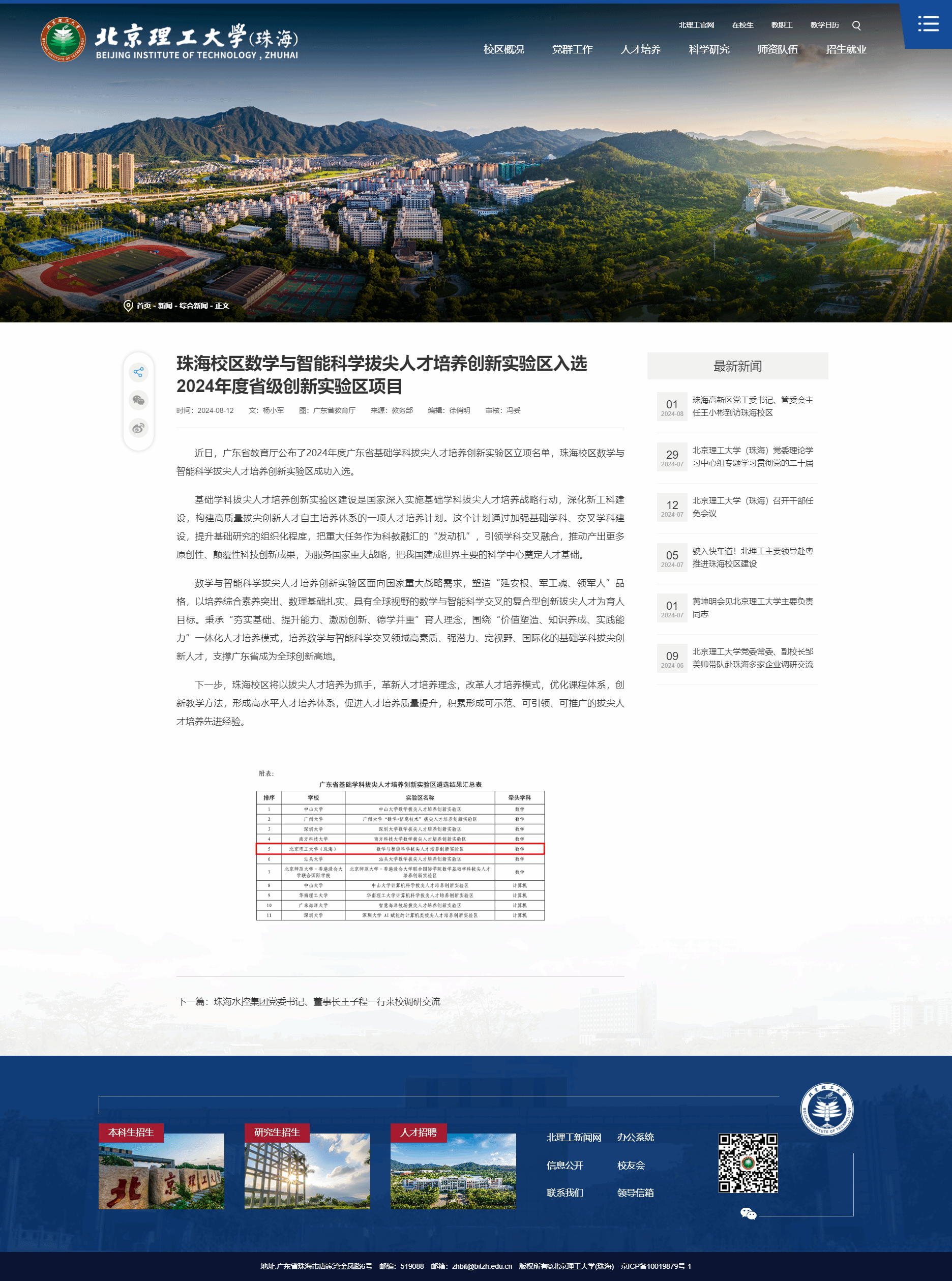 近日,广东省教育厅公布了2024年度广东省基础学科拔尖人才培养创新实验区立项名单,珠海校区数学与智能科学拔尖人才培养创新实验区成功入选。