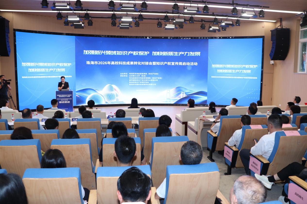 4月20日,珠海市2026年知识产权宣传周暨高校科技成果转化对接会在北京理工大学(珠海)举行。本次活动以“加强新兴领域知识产权保护 加快新质生产力发展”为主题,由珠海市市场监督管理局(知识产权局)主办,北京理工大学(珠海)等单位承办。珠海市市场监管局党组书记、局长李喜妍,北京理工大学(珠海)常务副校长栗苹出席会议。