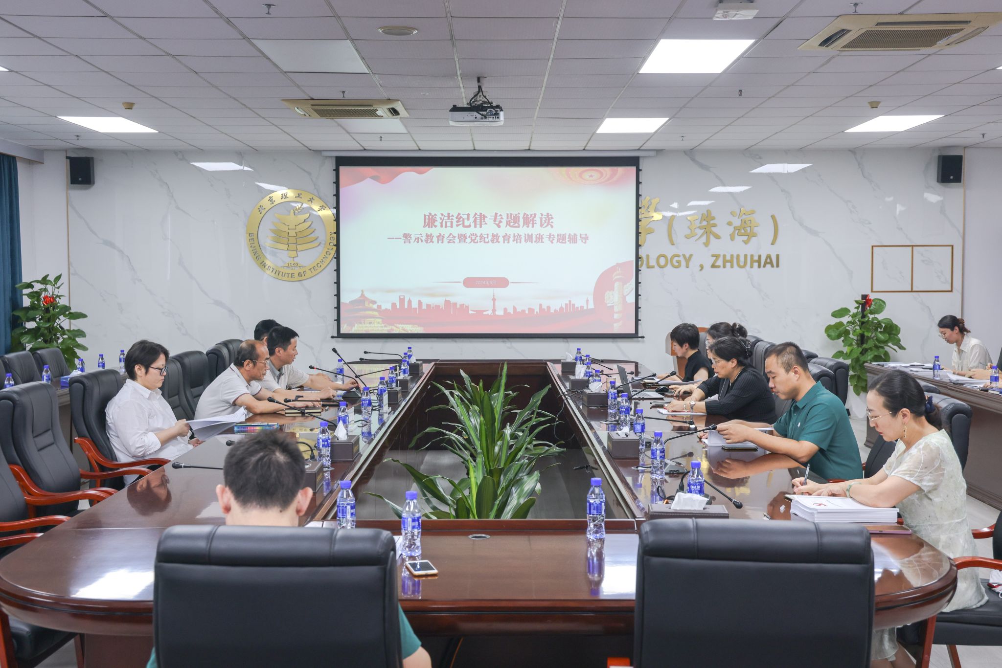6月18日下午,北京理工大学(珠海)召开警示教育会暨党纪教育培训班。北京理工大学(珠海)工作联席会党员成员、珠海学院两委委员及二级单位党组织书记参加会议。北京理工大学(珠海)工作联席会成员、珠海学院党委副书记罗勇主持会议。