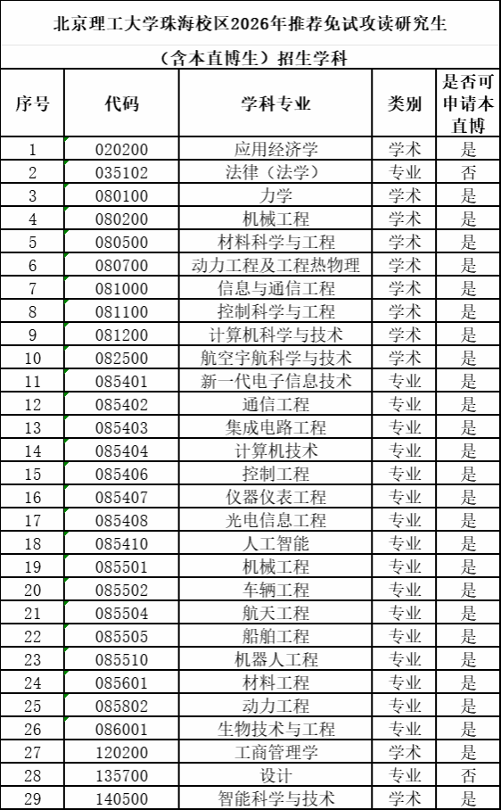 北京理工大学(珠海)2026年接收推荐免试研究生(含本直博生)预报名的通知
